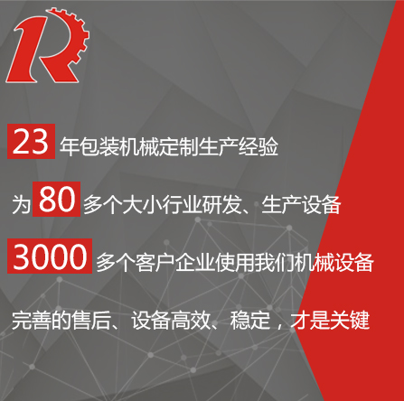 廣州市睿佳機(jī)械設(shè)備有限公司是國內(nèi)專業(yè)從事自動化包裝機(jī)械產(chǎn)品,集研發(fā)、生產(chǎn)、銷售、服務(wù)于一體的制造公司,已通過ISO9001:2008質(zhì)量體系認(rèn)證,部分系列產(chǎn)品已通過歐盟CE認(rèn)證。 經(jīng)過多年的發(fā)展,公司專業(yè)生產(chǎn):封尾機(jī),灌裝機(jī),旋蓋機(jī),貼標(biāo)機(jī),包裝機(jī),輸送機(jī),噴碼機(jī),灌裝生產(chǎn)線等機(jī)械設(shè)備。企業(yè)以開發(fā)生產(chǎn)包裝機(jī)械和訂做特殊包裝機(jī)械為主,所生產(chǎn)的包裝機(jī)械在同行和客戶中都得到一致的贊賞,以高技術(shù)和穩(wěn)定的質(zhì)量遠(yuǎn)銷東南亞和歐美。在國內(nèi),也成為多家知名藥廠、食品廠、化妝品廠指定使用產(chǎn)品。 睿佳機(jī)械:“想客戶之所想,急客戶之所急”既是睿佳對廣大客戶的承諾也是睿佳的宗旨,睿佳將與時(shí)代同步、銳意進(jìn)取,以更優(yōu)質(zhì)的服務(wù)回報(bào)廣大客戶對睿佳的信賴和支持。